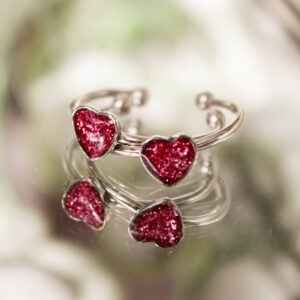 Pierścionek czerwony srebrne serduszko